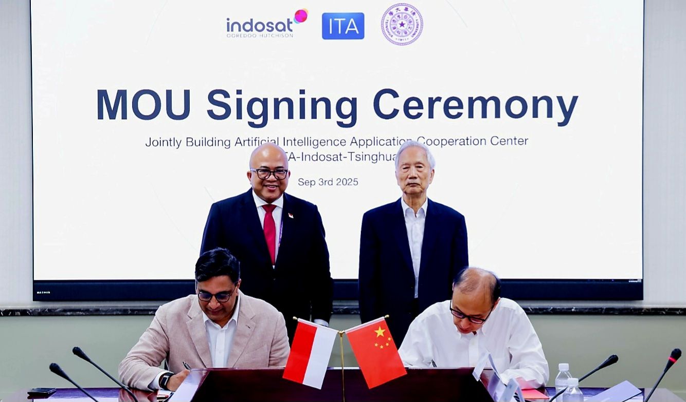 sumatrakini.com - Indosat Ooredoo Hutchison (IOH), Indonesia Technology Alliance (ITA) dan Tsinghua University Wuxi Research Institute of Applied Technologies atau Tsinghua University menandatangani Nota Kesepahaman untuk mendirikan AI Application Cooperation Center di Indonesia. Kolaborasi ditandatangani di Tsinghua University, disaksikan Wakil Duta Besar Republik Indonesia untuk Tiongkok Parulian George Andreas Silalahi yang menandai langkah penting Indonesia dalam memasuki era kecerdasan buatan.