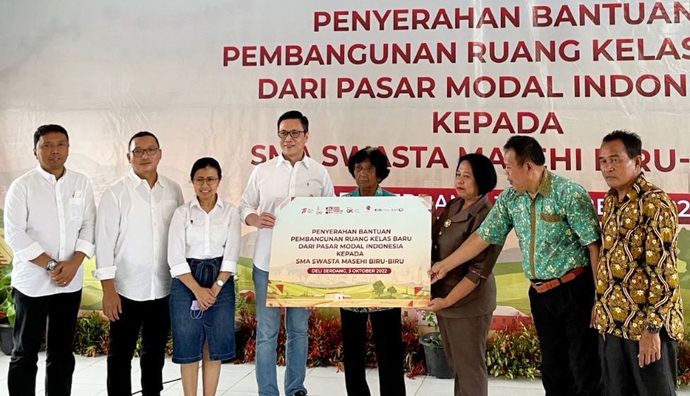 Pada seremoni penyerahan bantuan pembangunan ruang kelas, diserahkan secara simbolis oleh Direktur BEI Jeffrey Hendrik kepada Kepala SMA Swasta Masehi Biru-biru, Etty Barus. Hadir dalam acara, Direktur BEI Risa E Rustam, Direktur Utama KPEI, Iding Pardi, Direktur KSEI Syafruddin, perwakilan dari kecamatan dan Polsek Biru-biru dan Desa Periaria.