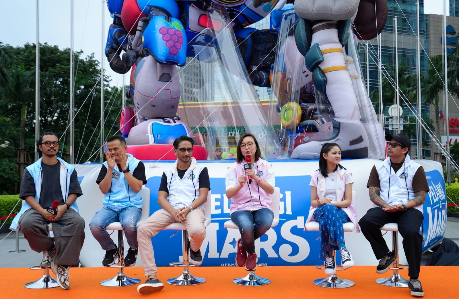 “Saya sudah meninjau DossGuavaXR Studio yang merupakan satu kebanggaan hidden gems dari lokasi di balik layar film ini. Terima kasih kepada Artha Graha Peduli yang sudah percaya dengan IP Indonesia melalui subsektor film dan selalu mendukung perjuangan ekonomi kreatif lewat UMKM. Tanpa dukungan dan kolaborasi berbagai pihak dalam bentuk hexahelix, akan sulit sekali Indonesia bisa maju ke depan. Pelangi di Mars menunjukkan semangat gotong royong dan kekuatan IP Indonesia sebagai karya ramah anak yang relevan,” ucapnya.